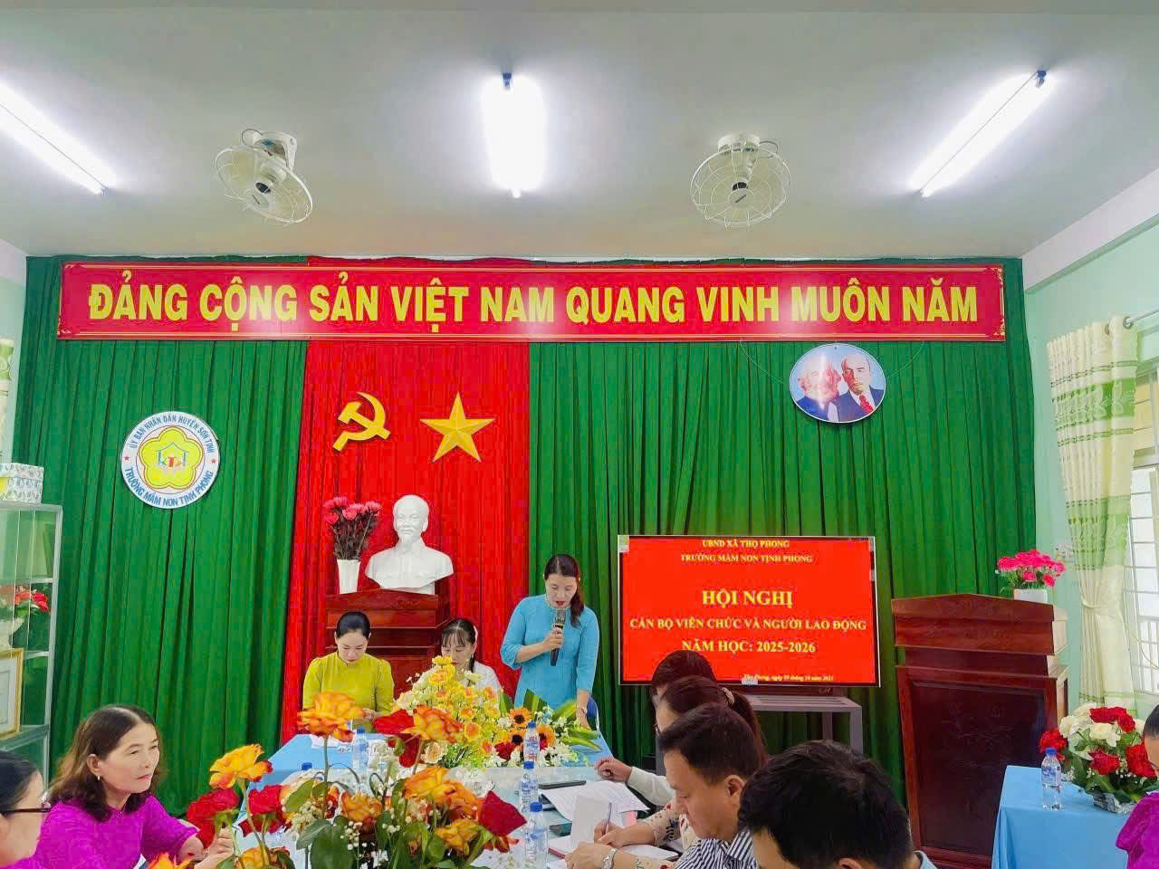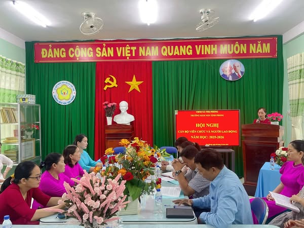 Sáng nay, 9/10/2025, Trường MN Tịnh Phong long trọng tổ chức Hội Nghị CBVC năm học 2025 – 2026 nhằm đánh giá kết quả thực hiện nhiệm vụ năm học 2024 – 2025, đồng thời thảo luận đề ra phương hướng, nhiệm vụ và các giải pháp thực hiện hiệu quả trong năm học mới.